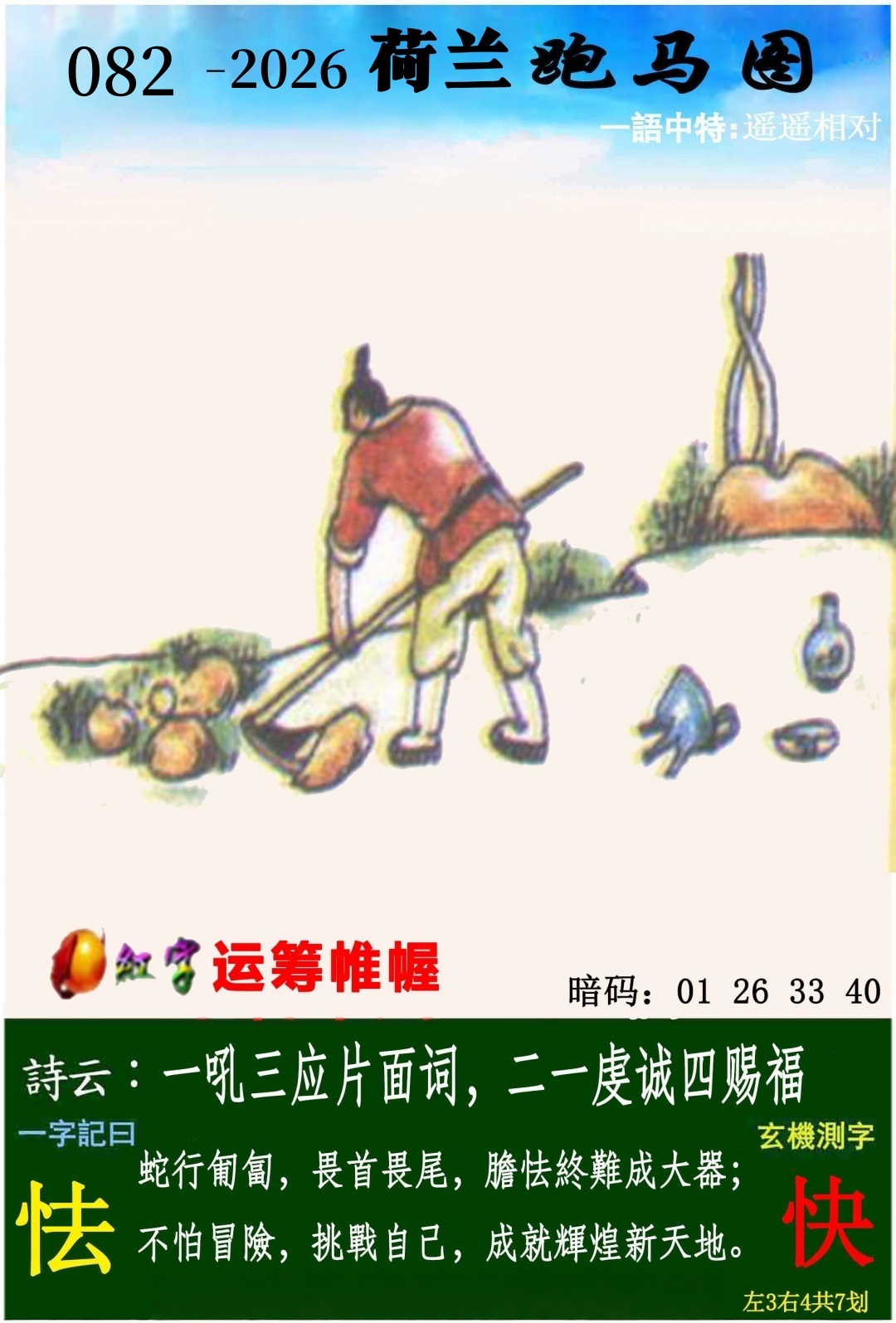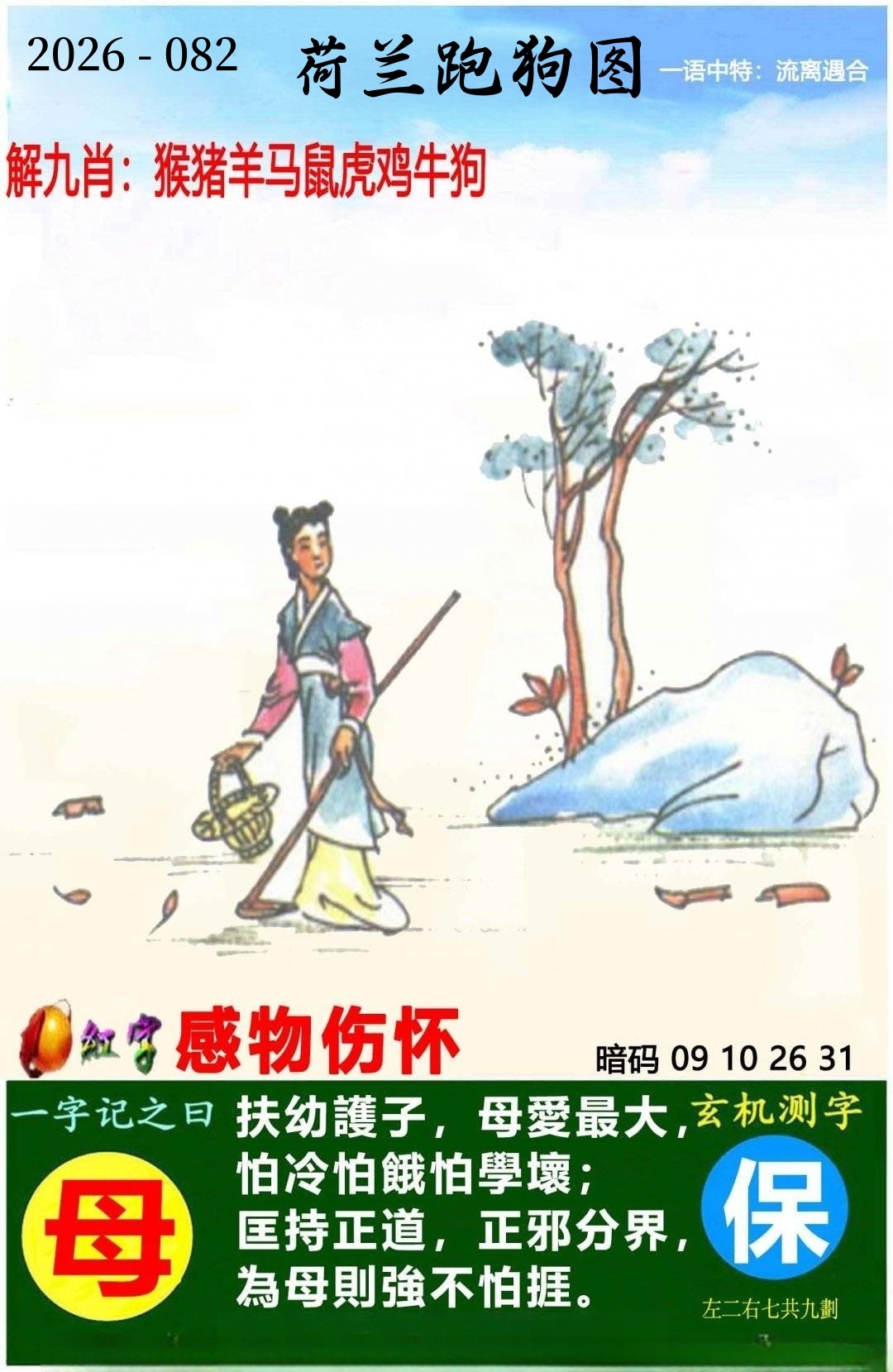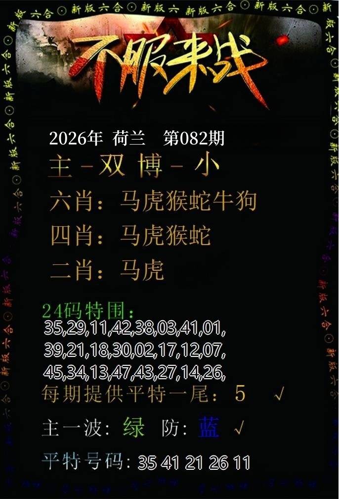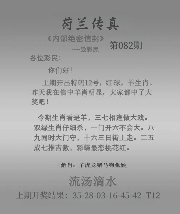 | 082期 | 男:龙虎猴牛 | 女:猪鸡蛇兔 | 中:?00 |